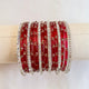 Glass bangles set in the color red and silver in 16 pieces