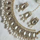Our unique Ravina is detailed with white pearls, kundan and stones. An elegant set with lightweighted earrings for any occasion.
